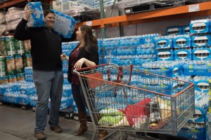 [Stone-faced] “Derek. Look, ever since you started loading up on water, our marriage has been in shambles. SHAMBLES. It’s all you ever talk about, all we ever do together. We can’t even make meals at home because our pantry is just water and there’s no room for anything else.”